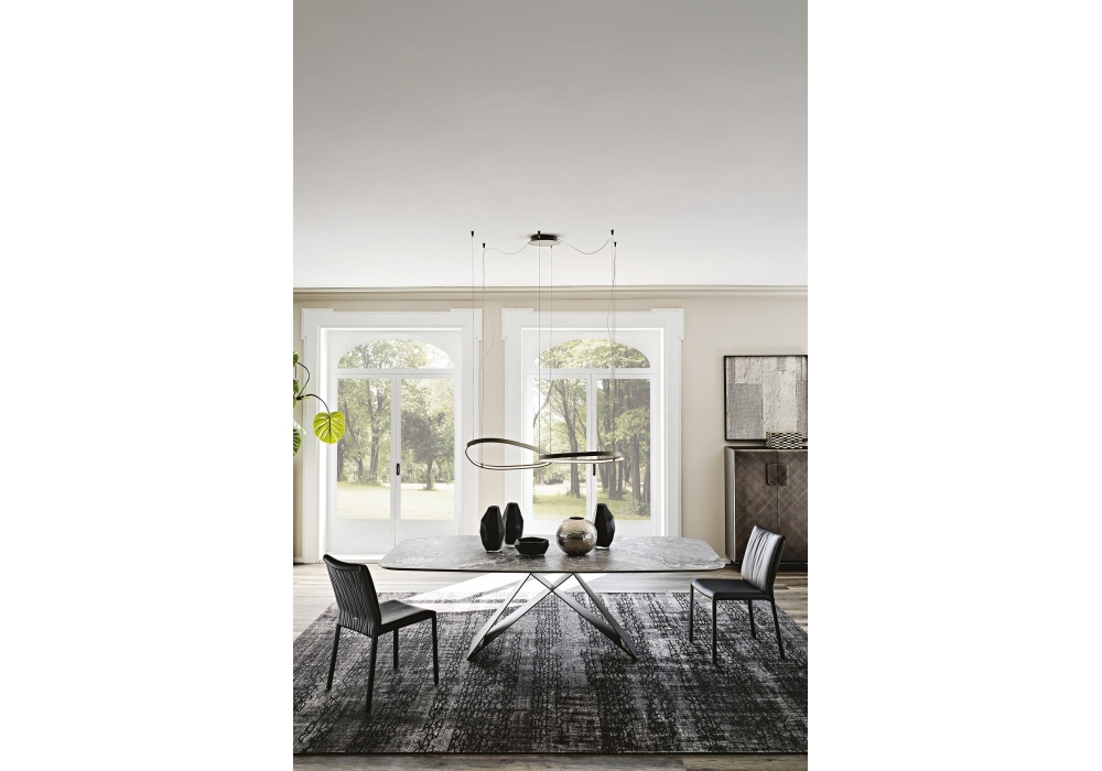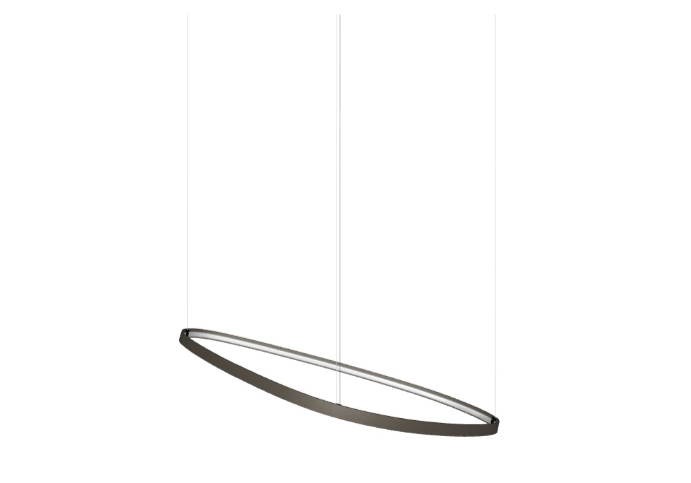 Magellano, von Studio Kronos für Cattelan Italia entworfen, ist eine LED-Deckenleuchte mit Metallgestell lackiert titan gaufriert. Verfügbar mit Fernbedienung und Dimmer.