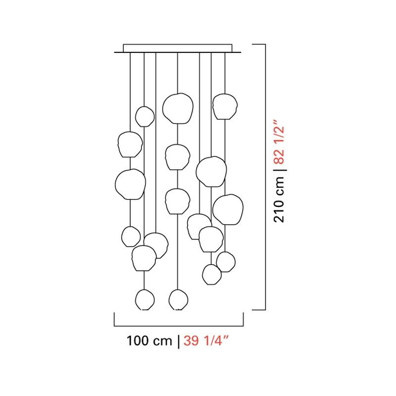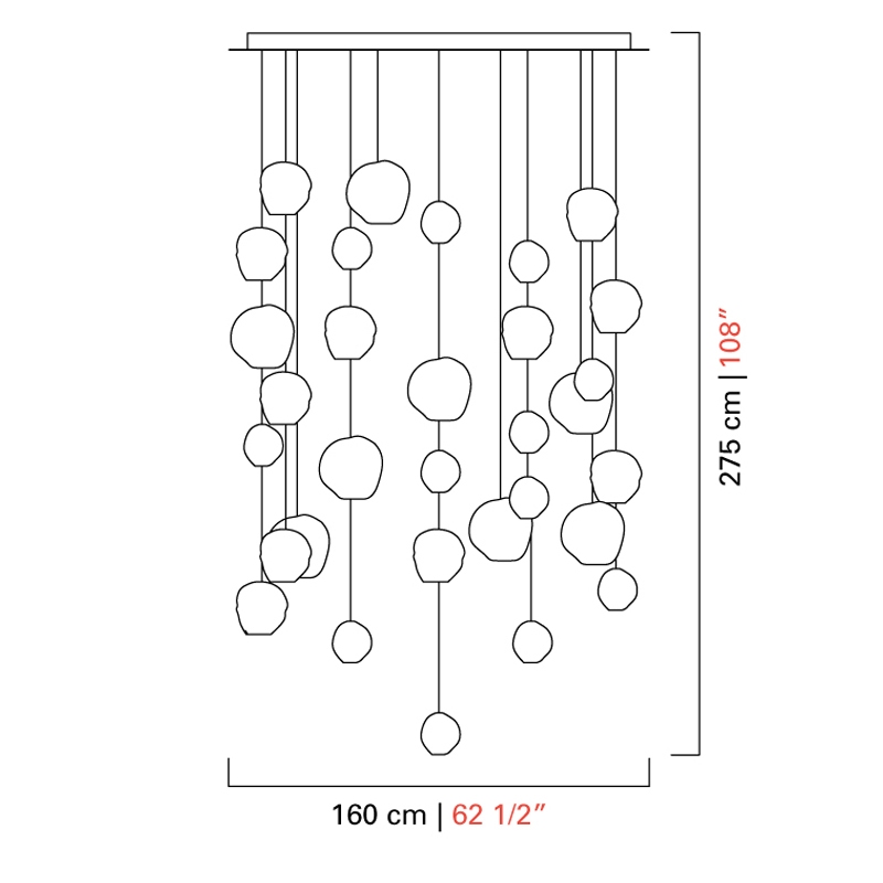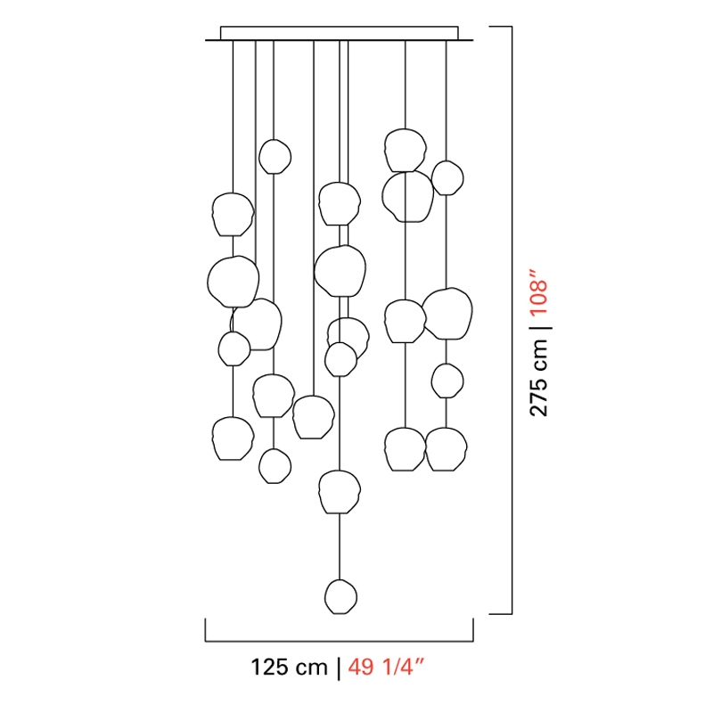 Hanami von Barovier & Toso ist eine Deckenleuchte mit kreisförmiger Tragstruktur aus poliertem chromfarbenem Metall. Die Aufhängungskabel tragen mehrere Glaskompositionen aus venezianischem Kristall, die die dimmbaren LED-Lichtquellen brechen. Hanami ist in verschiedenen Modellen und Glasausführungen erhältlich.