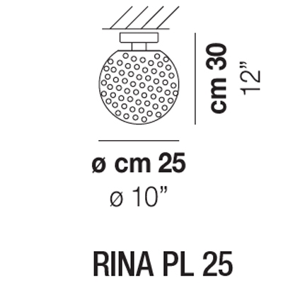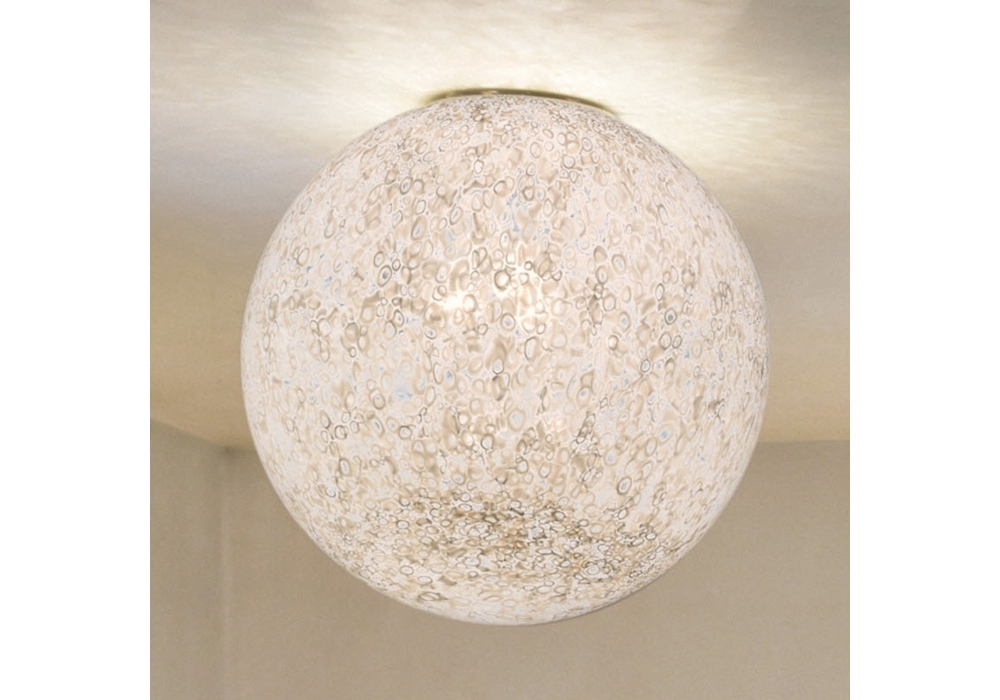 Rina von Barbara Maggiolo für Vistosi entworfen ist eine Deckenleuchte mit runder Metalltragstruktur in der Farbe Nickel satiniert. Der Diffusor besteht aus weißem Murrina-Glas mit poröser Oberfläche und nimmt eine LED- oder Halogenlichtquelle mit E27-Fassung auf. Rina ist in verschiedenen Modellen erhältlich.