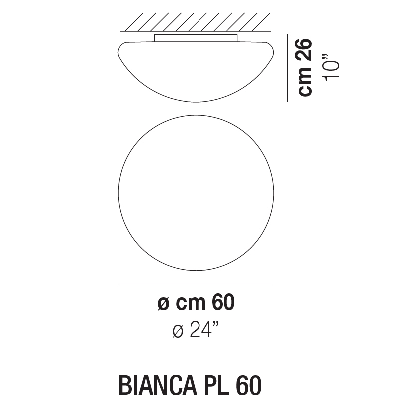 Bianca entworfen und hergestellt von Vistosi ist eine Deckenleuchte mit einer tragenden Struktur aus glänzend weißem Metall. Der Diffusor besteht aus rundem Glas mit glänzend weißer Oberfläche und nimmt eine dimmbare LED oder Halogenlichtquelle mit E27 Fassung auf. Bianca ist in verschiedenen Modellen erhältlich.