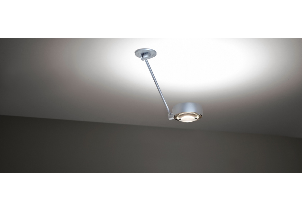 Sento von Occhio entworfen, ist eine LED Deckenleuchte aus Aluminium, Kunststoff, Glas und optischem Kunststoff mit flachem Fuß zur Montage auf Unterflurdose oder hohem Fuß mit mitgeliefertem Netzteil. Dimmbar über "touchless control“ oder über Occhio air. Verfügbar in mehreren Ausführungen, Abmessungen und Modellen.
