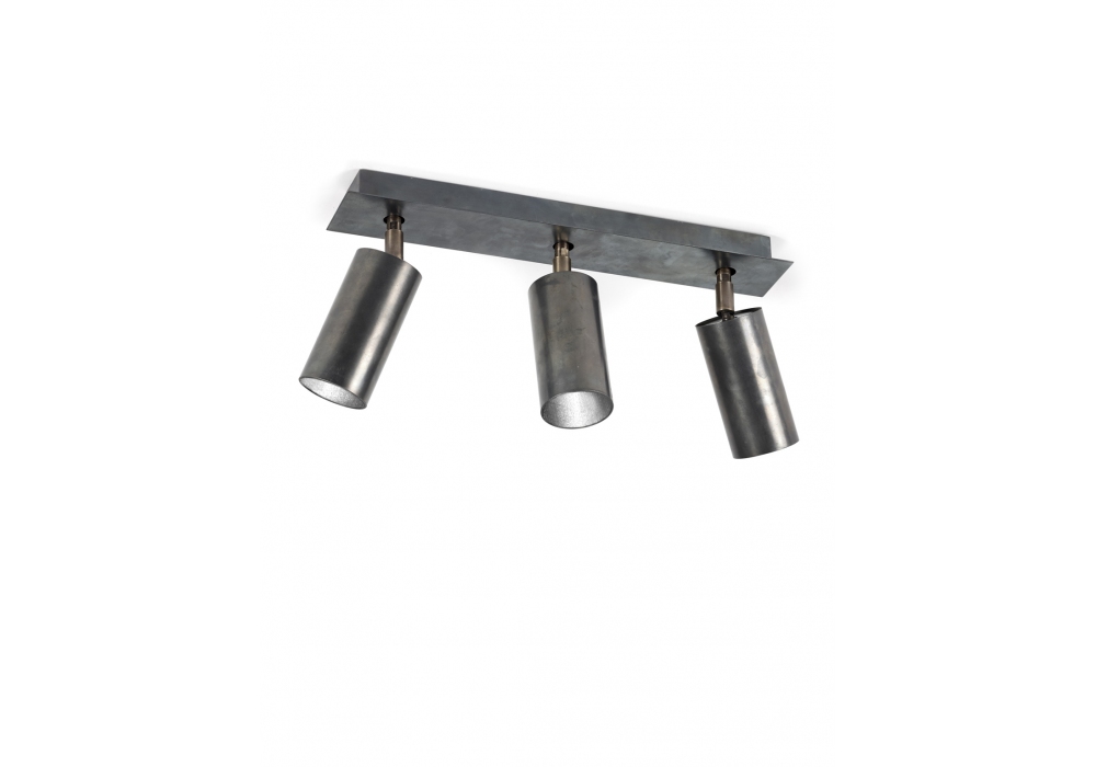 Sofisticato Linear von Koen Van Guijze für Serax entworfen, ist eine Deckenleuchte mit viereckiger Halterung aus schwarz lackiertem Blaustahl. Drei zylindrische Spots, drehbar um 355°, sind an der Struktur verankert, ebenfalls aus Bluesteel-Material mit schwarzem Finish. Die Lichtquelle ist Halogen oder LED mit GU10-Kupplung.