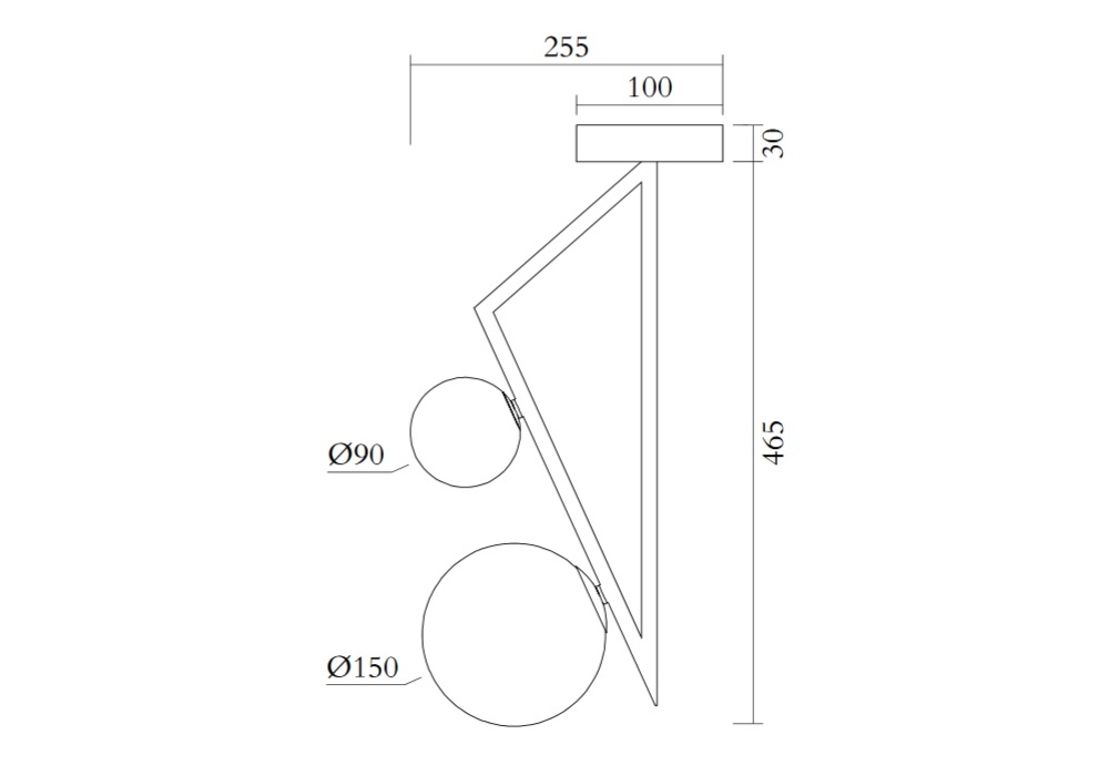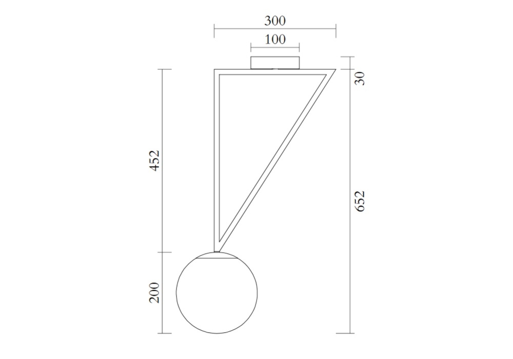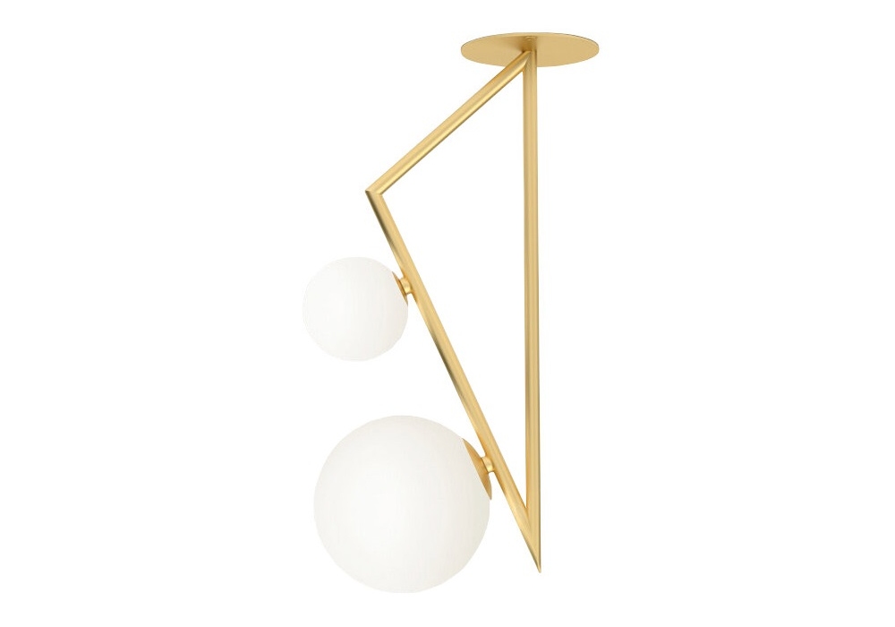 Triangle and Globe von Atelier Areti entworfen ist eine Deckenleuchte aus lackiertem Metall oder gebürstetem Messing. Diffusor aus weißem Glas. Erhältlich in zwei Modellen.