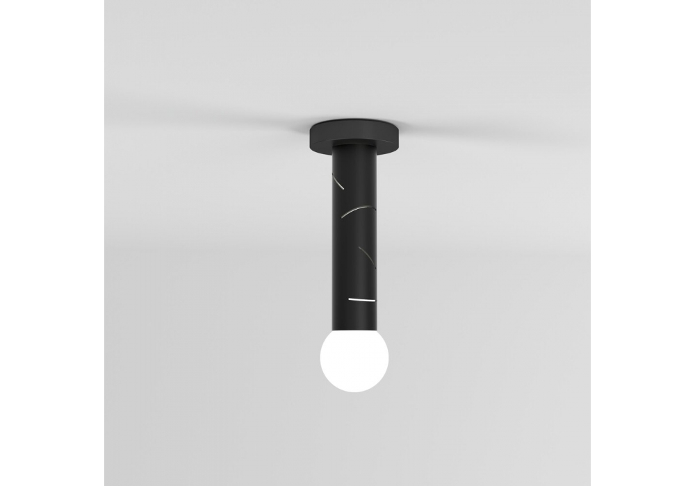 Birch von Atelier Areti entworfen ist eine Deckenleuchte aus schwarz oder weiß lackiertem Metall und weißem Glasdiffusor.