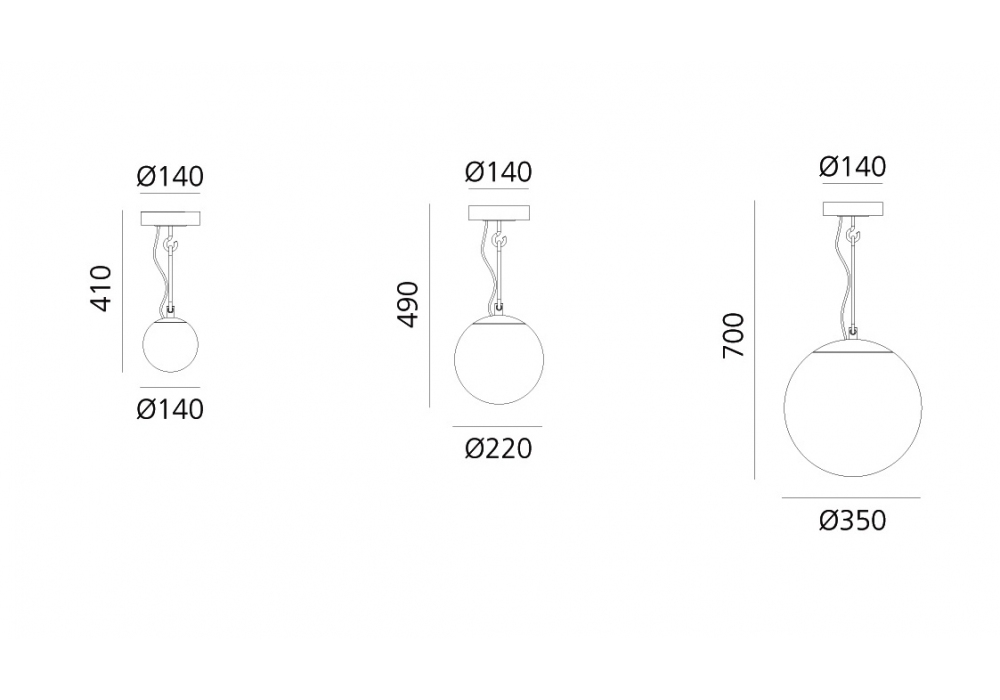 | Lampenschirm Durchmesser | Ø 14 cm; Ø 22 cm; Ø 35 cm. |