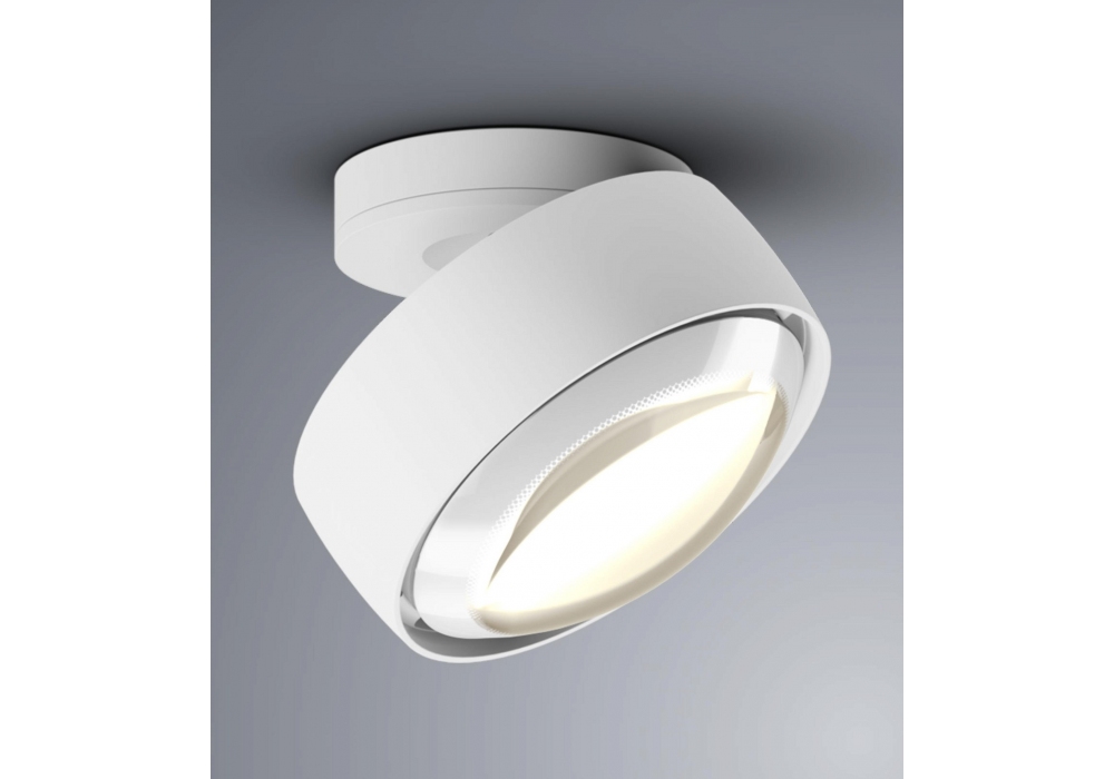 Più Alto von Occhio entworfen, ist ein LED-Wand-/Deckenstrahler mit einseitigem Lichtaustritt mit Linsenoptik (Più) oder flachem Kegelglas mit innenliegender Linse (Più R). Aus Aluminium, Messing, verchromtem oder lackiertem Stahl, optischem Kunststoff und Glas. Verfügbar in mehreren Ausführungen und Modellen.