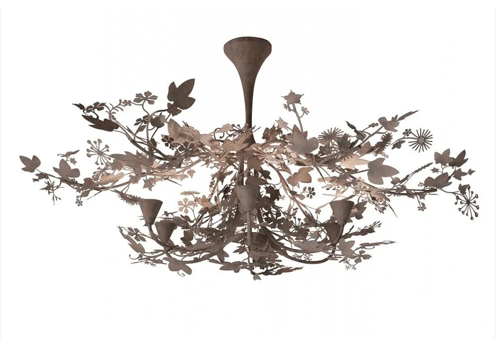 Ivy Shadow, produziert und entworfen von Porta Romana, ist eine Deckenleuchte mit einer tragenden Struktur aus geformtem und lackiertem Aluminium in verschiedenen Ausführungen. Als Lichtquelle wird ein LED-Anschluss vom Typ G9 verwendet.