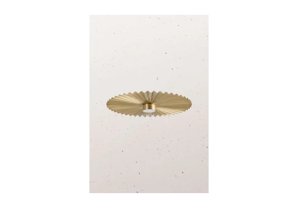 Pliè von Paolo Dell'Elce für Il Fanale entworfen ist eine runde Deckenleuchte mit einer plissierten Oberfläche aus natürlichem Messing. Der Diffusor hat eine zylindrische Form und verfügt über eine LED-Lichtquelle mit integriertem Triac-Dimmsystem. Pliè ist in verschiedenen Modellen erhältlich.