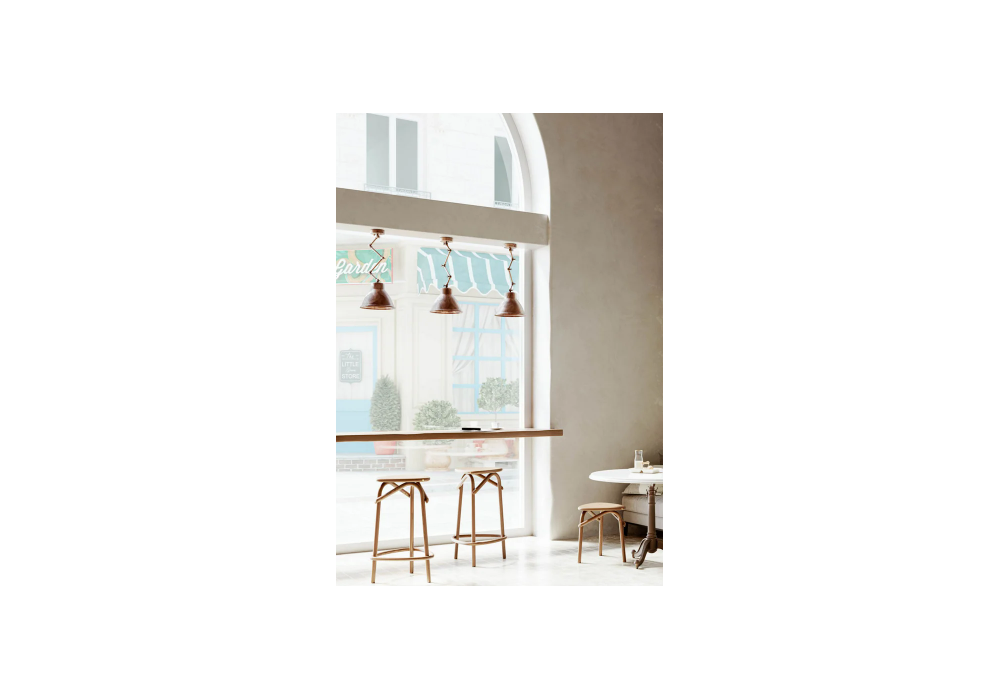 Loft von Dt Studio für Il Fanale entworfen ist eine Deckenleuchte die aus mehreren beweglichen Armen besteht, die mit Eisen- und Messinggelenken ausgestattet sind. Der Lampenschirm ist aus Metall verstellbar und schirmt eine dimmbare LED-Lichtquelle ab. Loft ist in verschiedenen Modellen erhältlich.