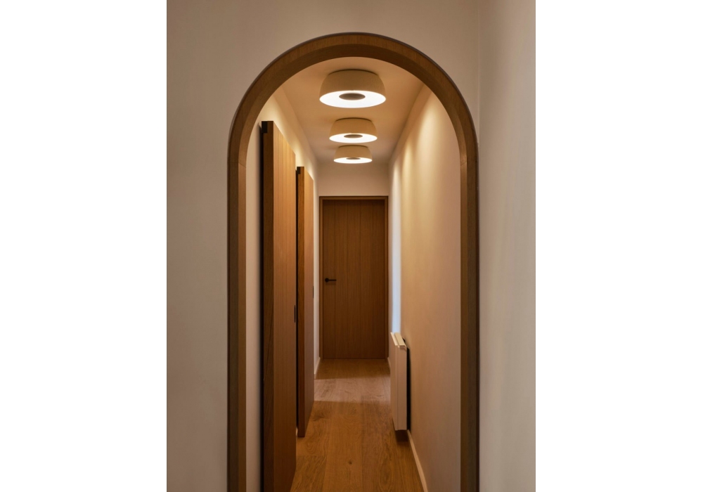 Djembé von Joan Gaspar für Marset entworfen, ist eine Deckenleuchte aus Polyethylen und einem Aluminiumdiffusor. Erhältlich in verschiedenen Ausführungen und Größen.