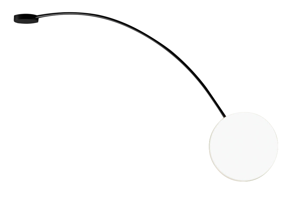 Filo von Defne Koz und Marco Susani für Italamp entworfen, ist eine LED-Deckenleuchte mit weißem Diffusor aus mundgeblasenem Glas und Metallstruktur in gebürstetem Hellgold oder mattschwarzem Finish.