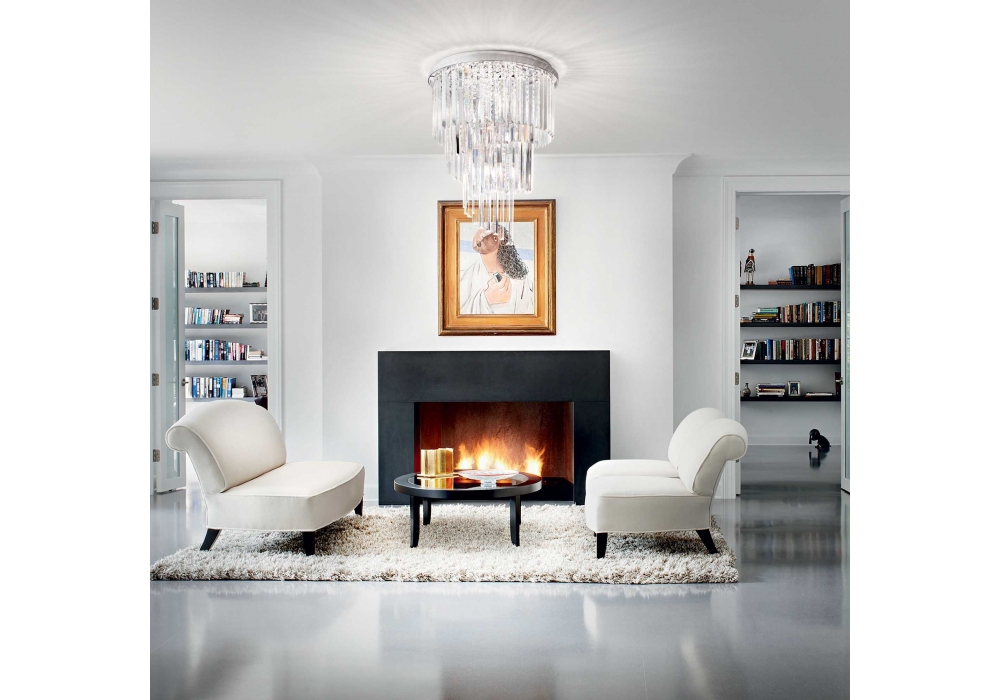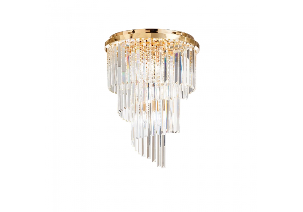 Carlton SP12 entworfen und hergestellt von Ideal Lux ist eine Deckenleuchte mit Metalltragstruktur. Die Anhänger sind transparente Kristallstäbe, die von achteckigen Ketten gehalten werden, die am runden Rahmen verankert sind. Die verwendeten Lichtquellen sind vom Typ LED. Carlton SP12 ist in verschiedenen Ausführungen erhältlich.