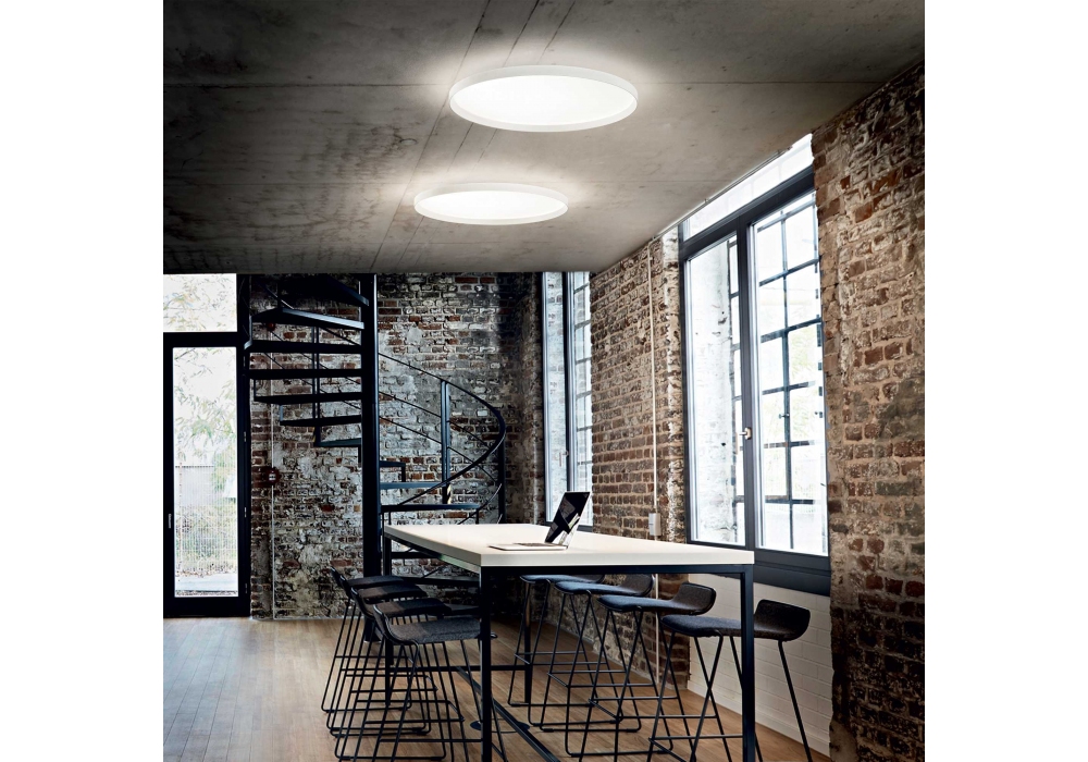 Fly entworfen und hergestellt von Ideal Lux ist eine runde Deckenleuchte mit einer pulverbeschichteten Aluminiumstruktur. Der Diffusor besteht aus opalem Kunststoff und schirmt eine in verschiedenen Lichttönen integrierte LED-Lichtquelle ab. Fly ist in verschiedenen Modellen und dimmbaren Ausführungen erhältlich.