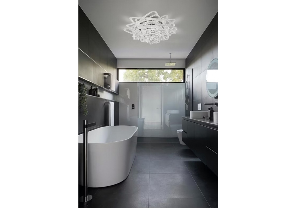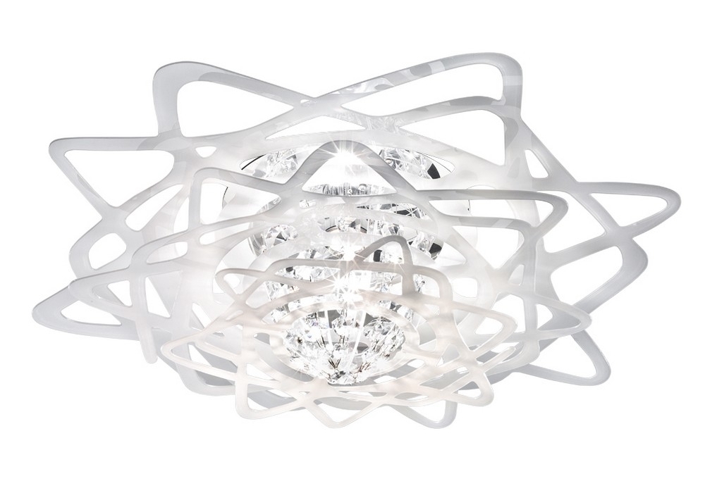 Aurora Mini von Nigel Coates für Slamp entworfen ist eine Deckenleuchte die vollständig aus Plainflex®/97-Kristallen besteht. Der Diffusor besteht aus mehreren Elementen aus Plainflex®/97-Kristallen, die eine dimmbare LED-Lichtquelle mit Filament abschirmen. Aurora Mini ist in verschiedenen Ausführungen erhältlich.