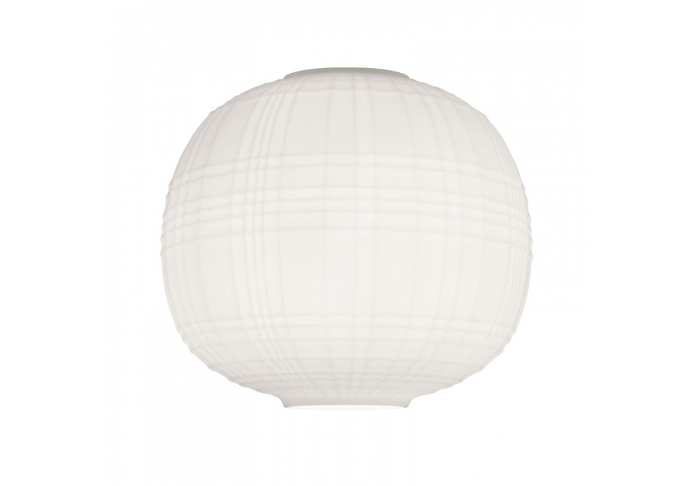 Tartan von Ludovica & Roberto Palomba für Foscarini entworfen ist eine runde Deckenleuchte, die vollständig aus säuregeätztem, geblasenem Glas mit einer Oberfläche mit Reliefdekorationen besteht. Als Lichtquelle wird eine Retrofit-LED mit dimmbarem System verwendet.