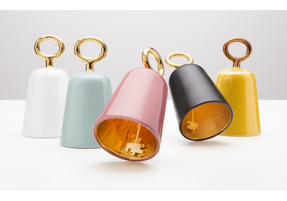 Unlock, von CtrlZac für Bosa entworfen, ist eine Glocke in Keramik mit Edelmetallen, ein Objekt mit symbolischen Bedeutungen, deren Klang, kann verschiedene Bereiche unserer kollektiven und individuellen Gedächtnis evozieren. Verfügbar in mehreren Ausführung.