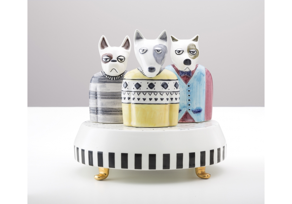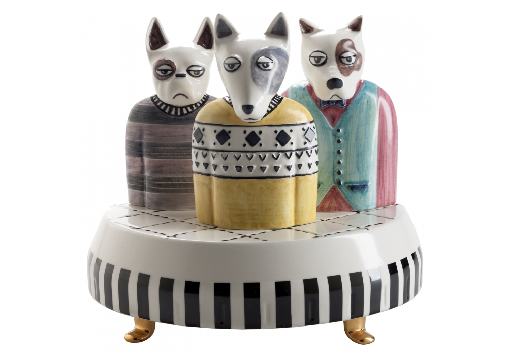 I Molossi, von Elena Salmistraro für Bosa entworfen, ist eine Spieldose in Keramik, in der die traditionellen Pferde durch Mastiffs ersetzt wurden: Der beste Freund des Mannes wird so zum symbolischen Wächter, der uns durch das Leben begleitet, und zusammen mit der Musik, die uns zurückführt rechtzeitig. Verfügbar in 4 Modellen.