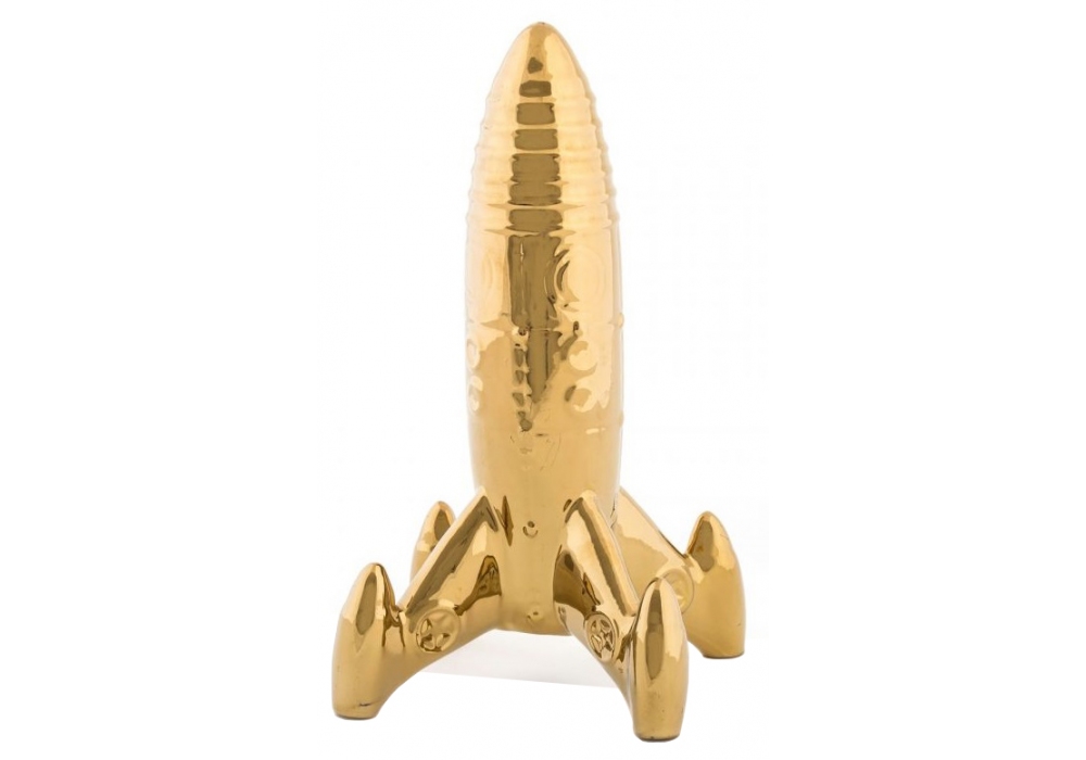 La Mia Astronave entworfen von Selab & Alessandro Zambelli für Seletti, ist ein Einrichtungselement, das vollständig aus goldfarbenem Porzellan besteht.