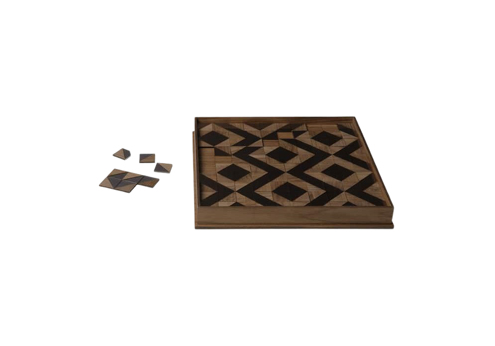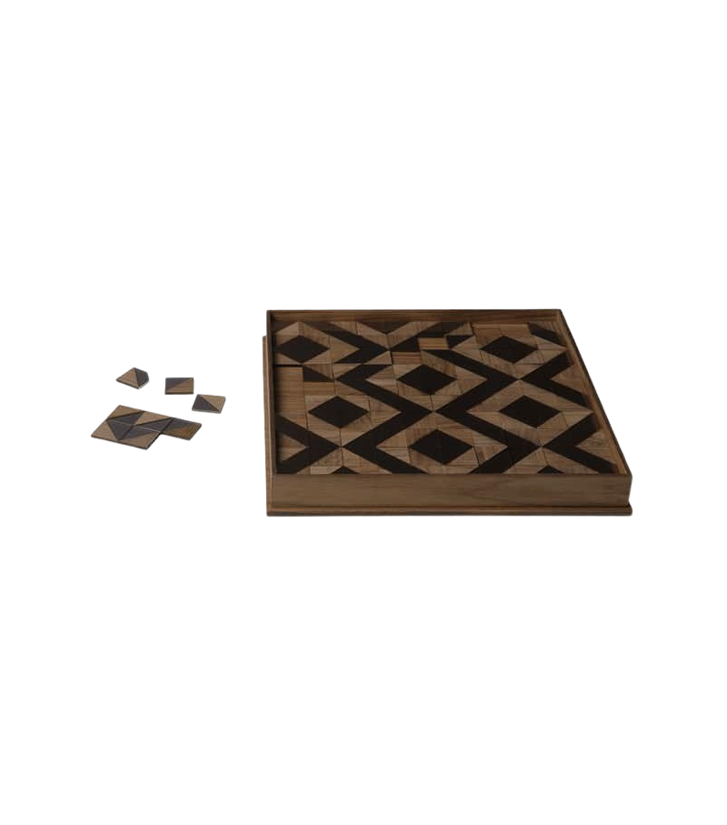 Diy von Giancarlo Bosio und Centro Ricerche Giorgetti entworfen, ist ein Mosaikpuzzle aus Canaletto-Nussbaum und geräuchertem Methacrylat.