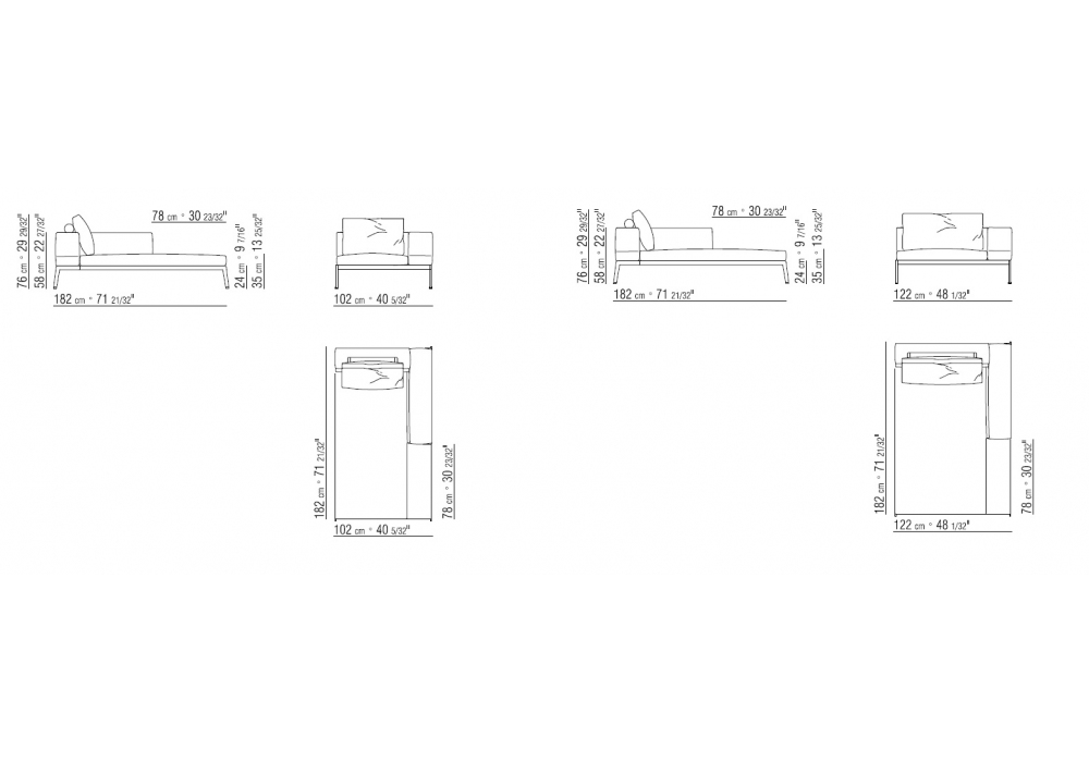 | Abmessungen | • 102 x 182 x H 76 cm; • 122 x 182 x H 76 cm |