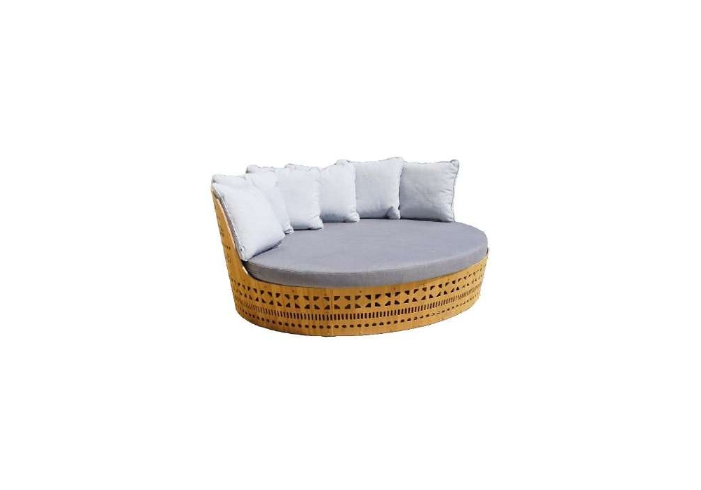 Dogon D, von Ferruccio Laviani für Emmemobili entworfen, ist ein Tagesbett, das sich durch eine perforierte Struktur aus einer einzigen flexiblen Platte aus furniertem, gebogenem Sperrholz auszeichnet. Sitzkissen mit Schaumstoffpolsterung bezogen mit Samt oder Stoff. Auf Wunsch sind Rückenkissen mit samt- oder stoffbezogener Federpolsterung erhältlich.
