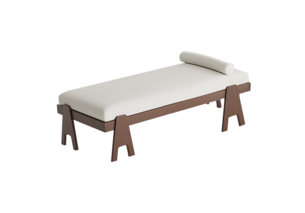 Cavalletto von Angelo Mangiarotti für Agapecasa entworfen, ist ein Daybed mit einer Struktur aus Birkensperrholz in Eichen- oder Mahagoni-Ausführung. Polsterung aus Steelcut Trio Kvadrat-Stoff.