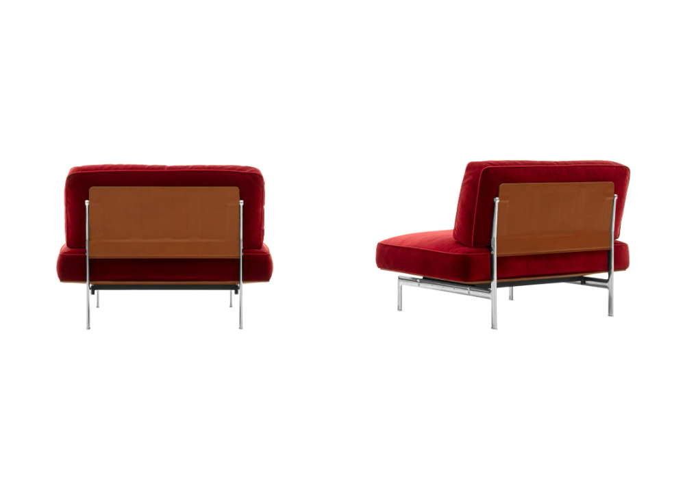 Diesis von Antonio Citterio und Paolo Nava für B&B Italia entworfe, ist ein Sessel mit einer tragenden Struktur aus poliertem, gebürstetem oder schwarz verchromtem Aluminium und Füßen aus matt gebürstetem Aluminium. Die hintere Struktur ist mit Leder in verschiedenen Ausführungen bezogen.