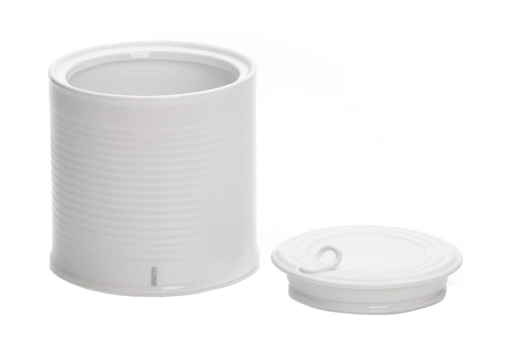 Biscuits entworfen von Selab & Alessandro Zambelli für Seletti ist ein Glas mit einem runden Deckel aus weißem Porzellan.