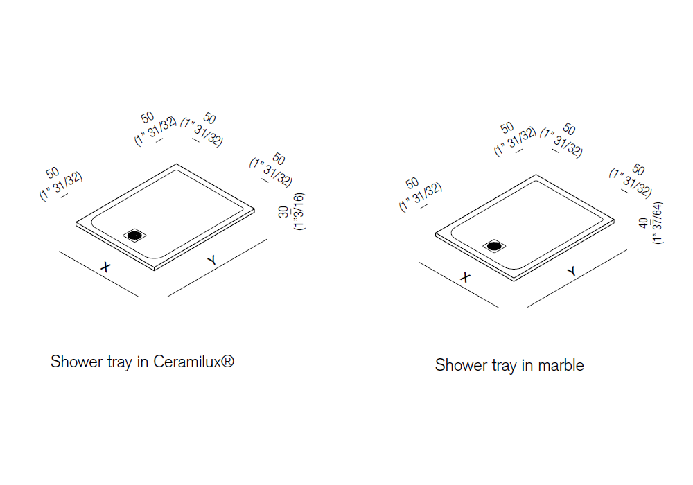 PDX hergestellt und entworfen von Agape, ist eine Duschwanne aus mattweißem Ceramilux® oder aus Marmor in den Varianten Carraraweiß, Marquinaschwarz und Carnicograu. Der Siphon mit Ablaufabdeckung aus weiß lackiertem Stahl ist bei der Ceramilux®-Version und aus weißem Carrara-Marmor im Lieferumfang enthalten; bei den Versionen aus schwarzem Marquina-Marmor und grauem Carnico-Marmor ist er schwarz lackiert. In verschiedenen Größen erhältlich.