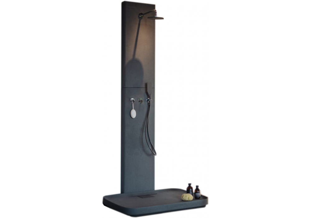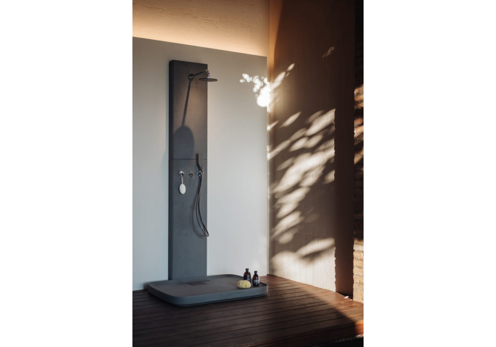 Petra von Diego Vencato und Marco Merendi entworfen, ist eine Duschsäule für den Außenbereich aus Cementoskin® oder Marmor, die in verschiedenen Ausführungen erhältlich ist. Ausgestattet mit Kerben auf der Rückseite, die eine individuelle Anpassung der Armaturen ermöglichen.