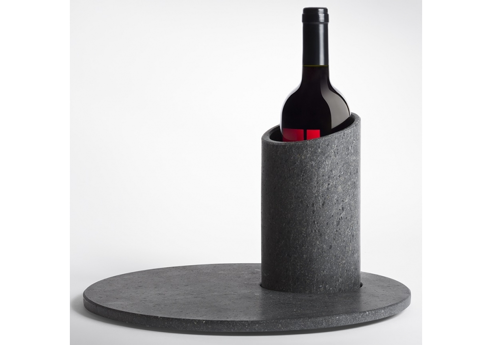 Punto e Virgola von C. Fiorello & F. Tomarchio für Lithea entworfen, ist ein Flaschenkühler mit abnehmbarem Schneidebrett.