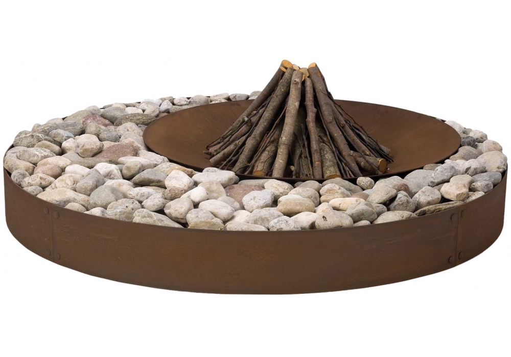 Zen von Ak47 Design entworfen, ist eine schöne Holzbrand-Feuerstelle mit einer runden Stahlkrone. Stein, Kies, vulkanische Steine und Sand sind nur einige der natürlichen Elemente, die verwendet werden können, um Zen zu vervollständigen. Nicht nur eine Feuerstelle, sondern auch eine Skulptur, eine Outdoor-Einrichtung, die die Umgebung umgibt.