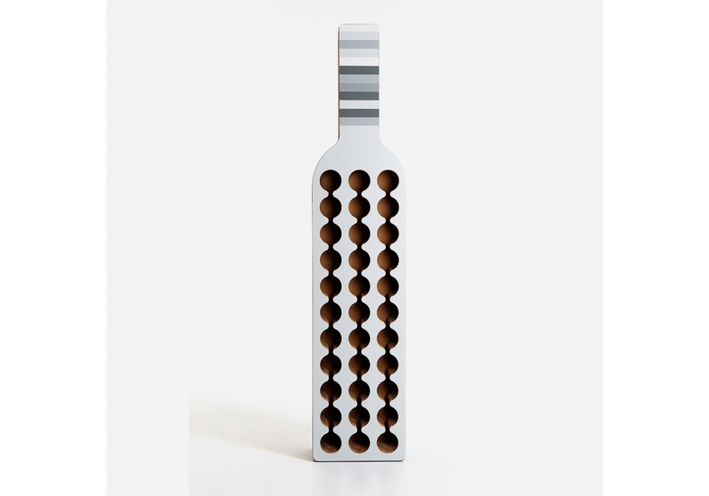 Bodega designed by Kubedesign is a bottle-shaped wine rack with 33 storage spaces and a shock-proof finish. Available in 3 colours with a striped design.
