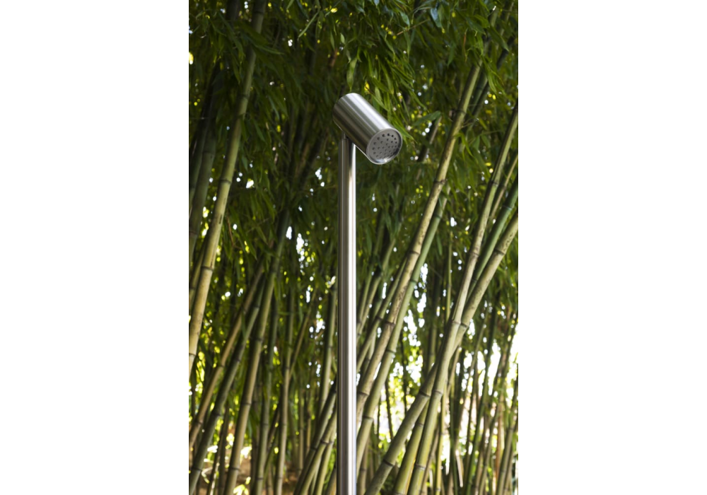 Square von Benedini Associati für Agape entworfen, ist eine bodenmontierte Duscharmatur aus poliertem oder satiniertem Edelstahl AISI316L. Komplett mit progressiver Steuerung.