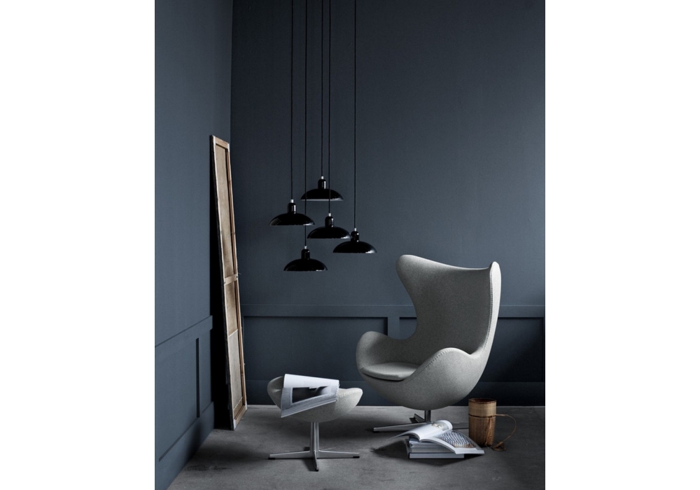 Egg von Arne Jacobsen für Fritz Hansen entworfen, ist ein komplett mit Stoff oder Leder bezogener Fußbank. Viersternfuß aus satiniertem oder pulverbeschichtetem poliertem Aluminium. Verfügbar in mehreren Ausführungen.