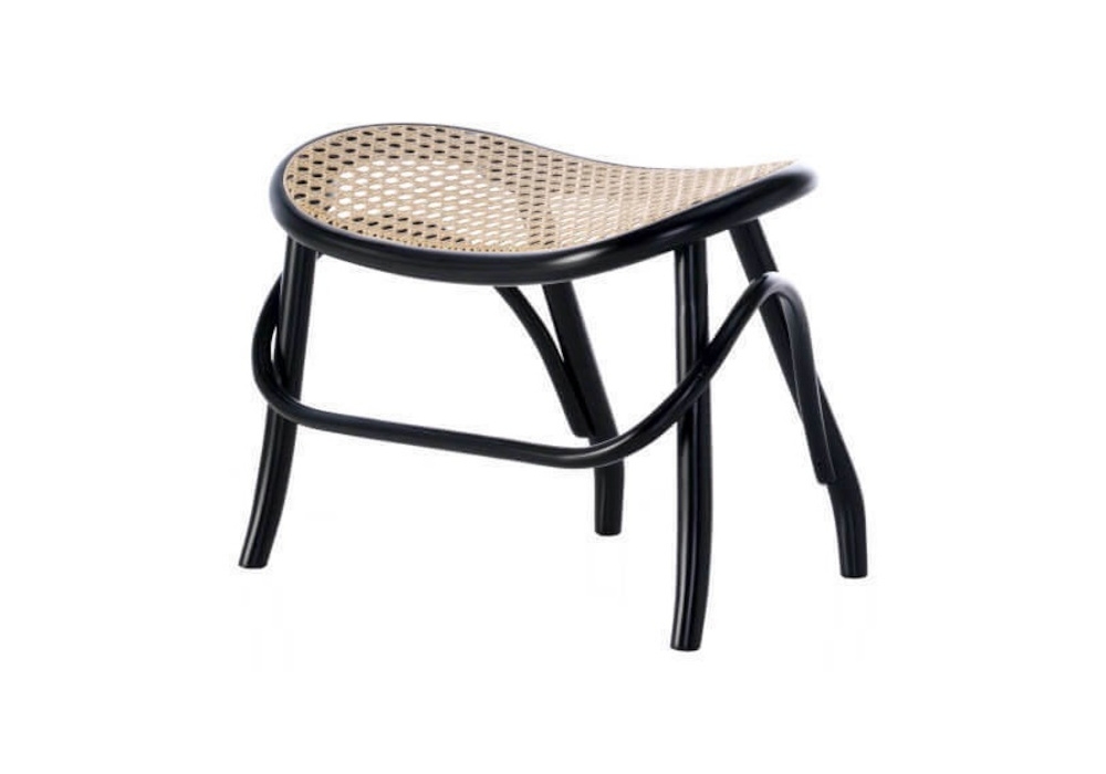 Lehnstuhl Hocker von Nigel Coates für Gebrüder Thonet Vienna entworfen, ist eine Fußstütze aus gebogener Buche verfügbar in verschiedenen Ausführungen, Sitzfläche aus grobmaschigem Wiener Stroh.