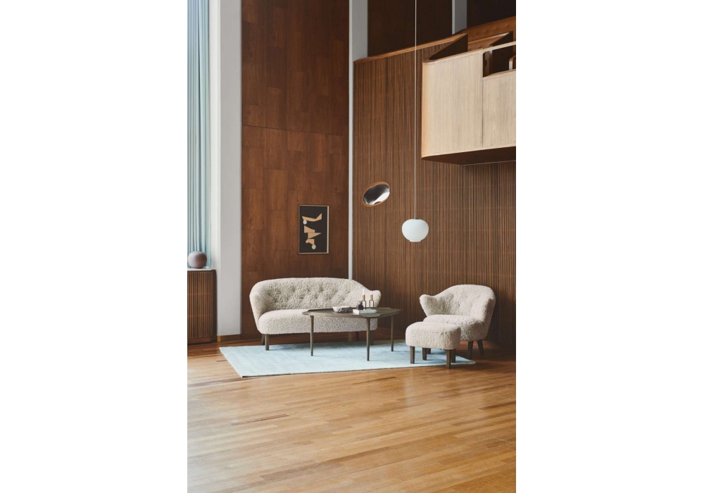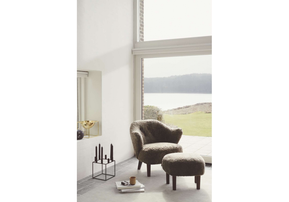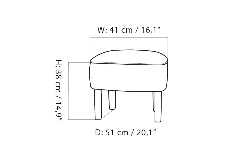 Ingeborg, hergestellt und entworfen von Audo Copenhagen, ist ein Ottomane aus Leder oder Stoff und Beinen aus naturbelassener oder dunkel gebeizter Eiche. Verfügbar in verschiedenen Ausführungen.