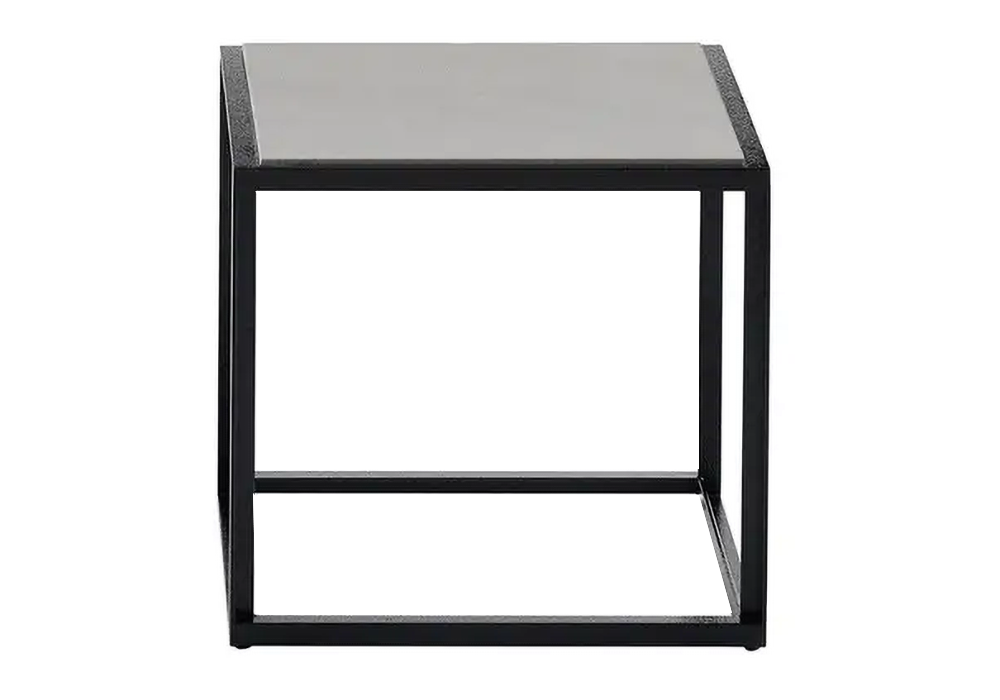 Canasta '13 von Patricia Urquiola für B&B Italia Outdoor entworfen, ist ein Beistelltisch aus Metall mit einem Gestell aus lackiertem Stahl in verschiedenen Ausführungen und einer Platte aus Zement-Feinsteinzeugfliesen. Verfügbar in verschiedenen Größen.