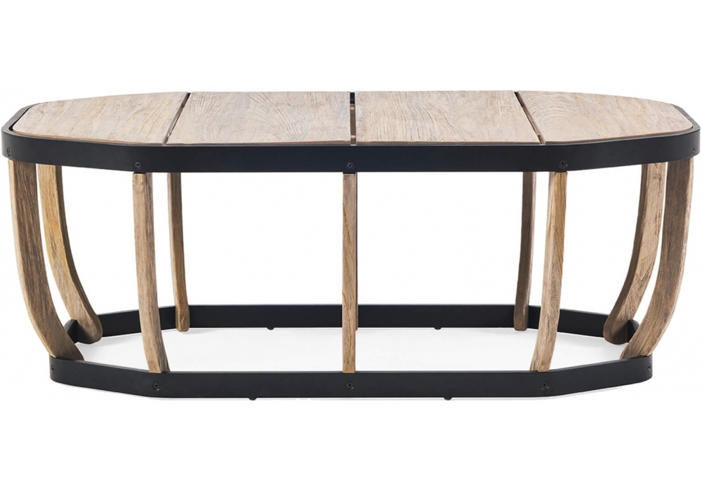 Swing von Patrick Norguet für Ethimo entworfen, ist ein Couchtisch mit Rahmen aus Aluminium und Tischplatte aus Teakholz, verfügbar in zwei Ausführungen.