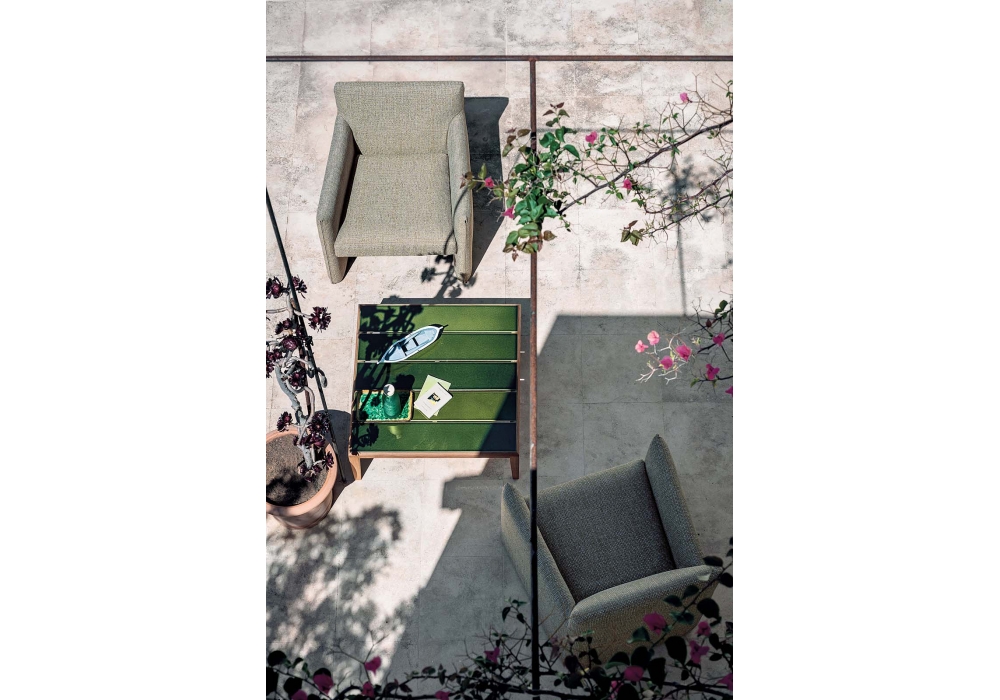 Teka, von Gordon Guillaumier für Roda entworfen, ist einer Couchtisch realisiert mit Teakholz Struktur und Tischplatte in Steingut oder emailliertes Steingut. Die Vermischung der verschiedenen Materialien strahlt alle ausdrucksvolle Kraft des Teakholzes, die mit einer ursprünglichen Lattenwirkung gemischt wird. Verfügbar in zwei Größen.