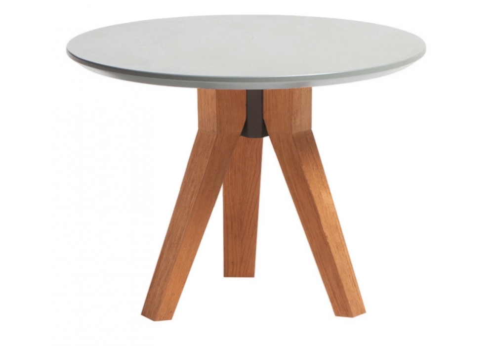 Vieques von Patricia Urquiola für Kettal entworfen ist ein niedriger Tisch mit runder Platte und dreibeinigem Untergestell aus lackiertem Aluminium. Die Tischplatte besteht aus lackiertem Aluminium, Marmor oder natürlichem Teakholz. Vieques ist in verschiedenen Ausführungen erhältlich.