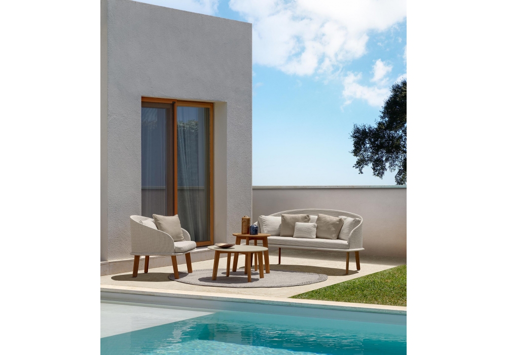 Cleosoft// Wood ist ein Couchtisch, das Marco Acerbis für Talenti entworfen hat. Die Cleo-Kollektion ist die perfekte Lösung, um Ihren Außenbereich einzurichten. Sie können sie entweder mit Teakholz- oder Rosenholzstruktur haben.