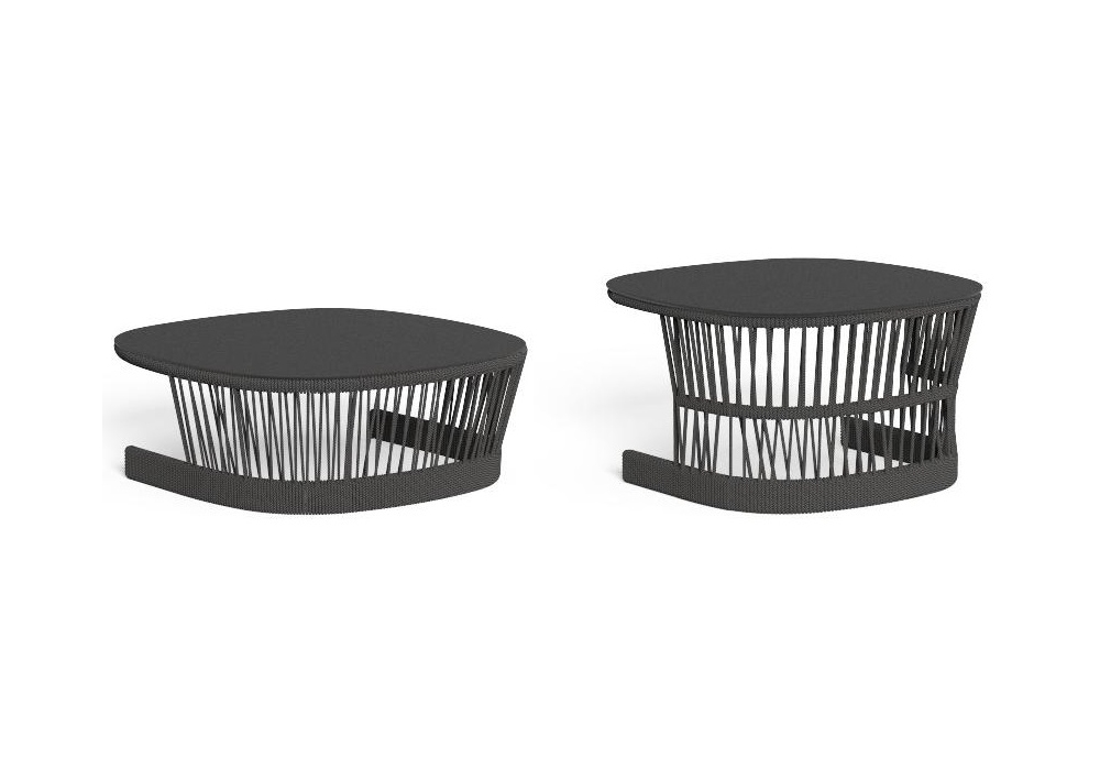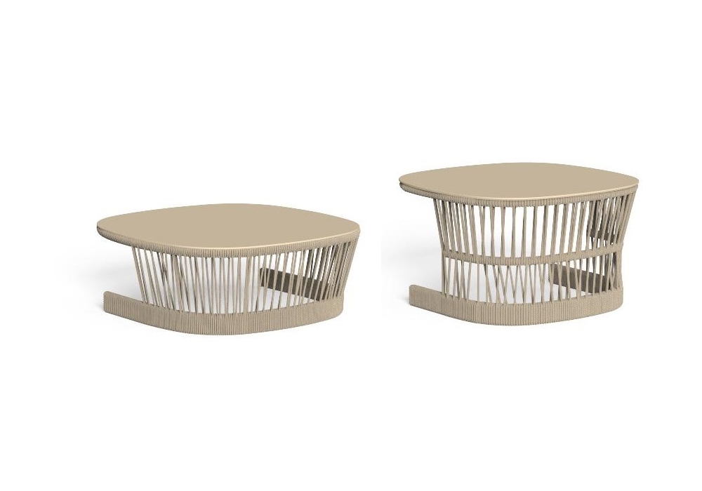 Cliff ist ein Couchtisch, den Ludovica und Roberto Palomba für Talenti entworfen haben. Platte aus lackiertem Aluminium, Beine aus Aluminium und Seil. Erhältlich in verschiedenen Größen und Ausführungen.