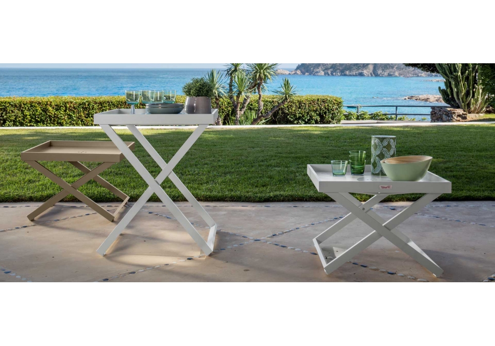 Ray ist ein Beistelltisch für Talenti. Interperienresistente Aluminiumstruktur, erhältlich in verschiedenen Farben und Abmessungen.