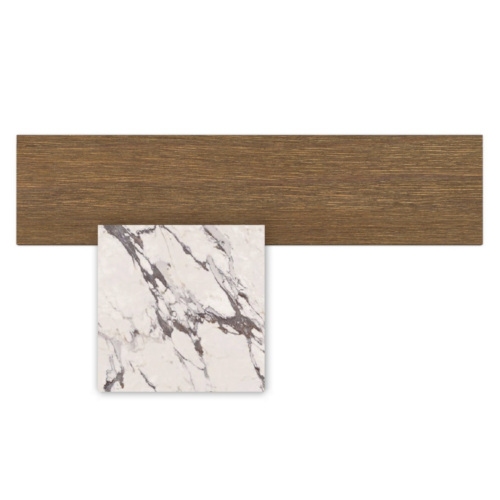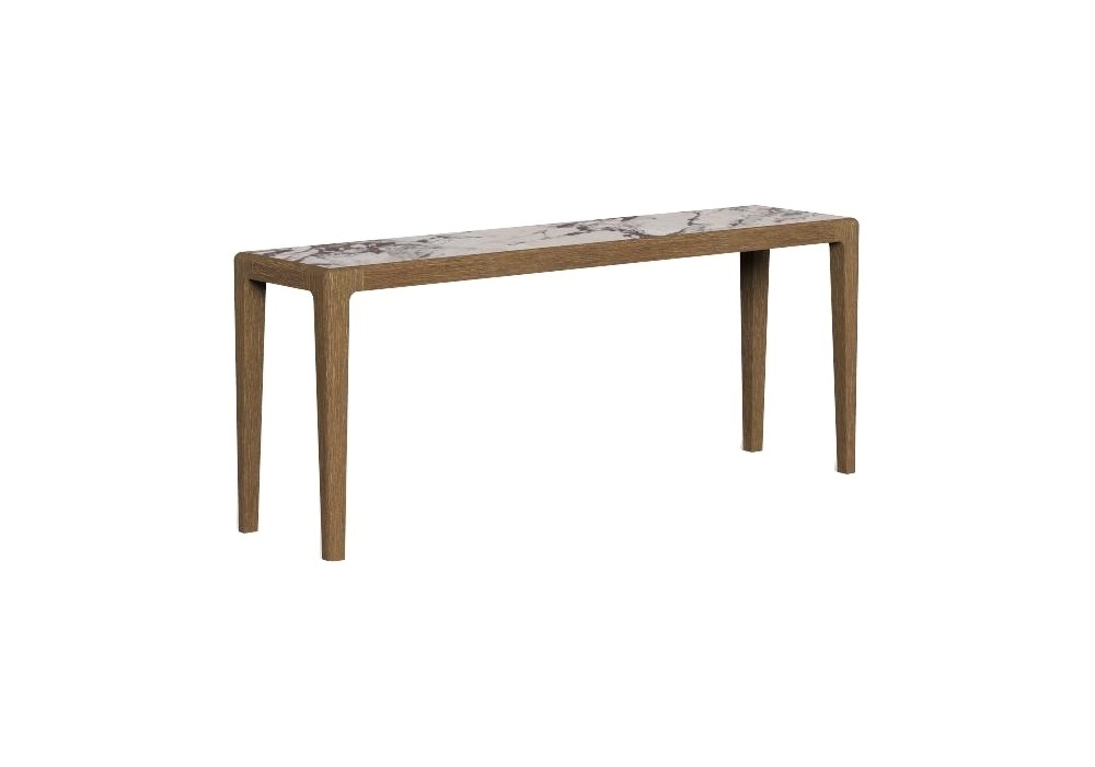 Cruise Teak von Ludovica und Roberto Palomba für Talenti entworfen, ist eine Konsole mit Holzstruktur und Steinzeugplatte, erhältlich in verschiedenen Ausführungen.