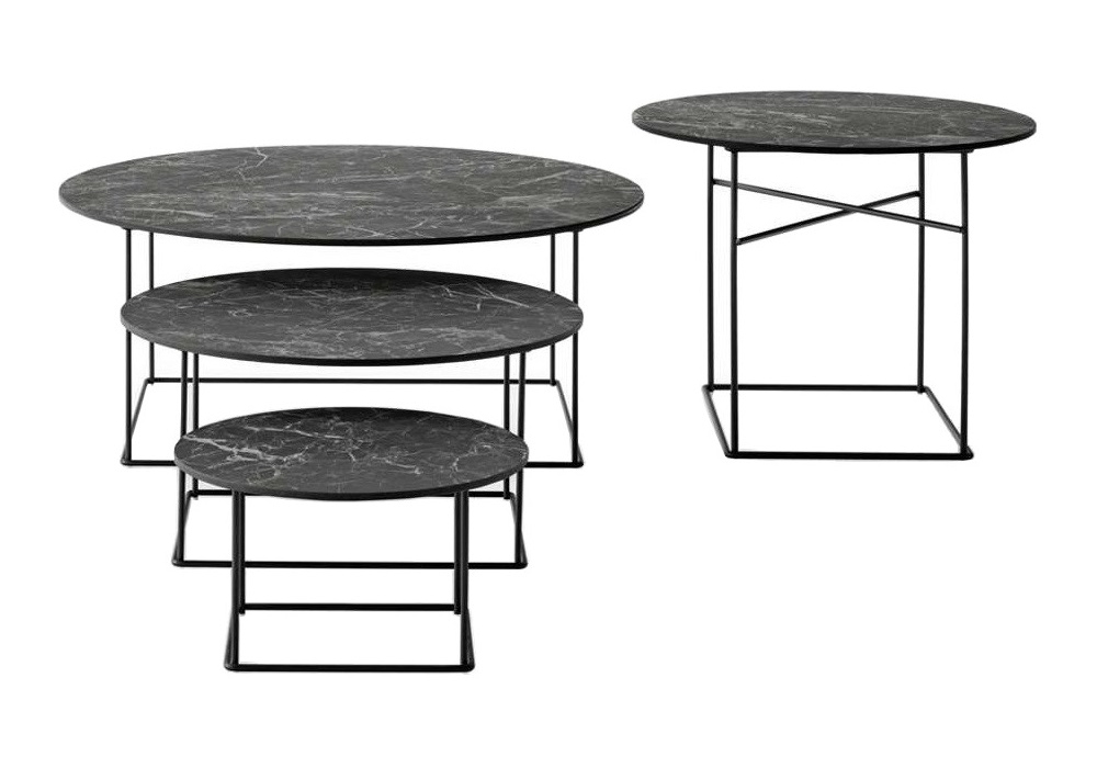 Fat-Fat von Patricia Urquiola für B&B Italia Outdoor entworfen ist ein Beistelltisch mit einer lackierten Stahlstruktur und einer Steinzeugplatte in verschiedenen Ausführungen.