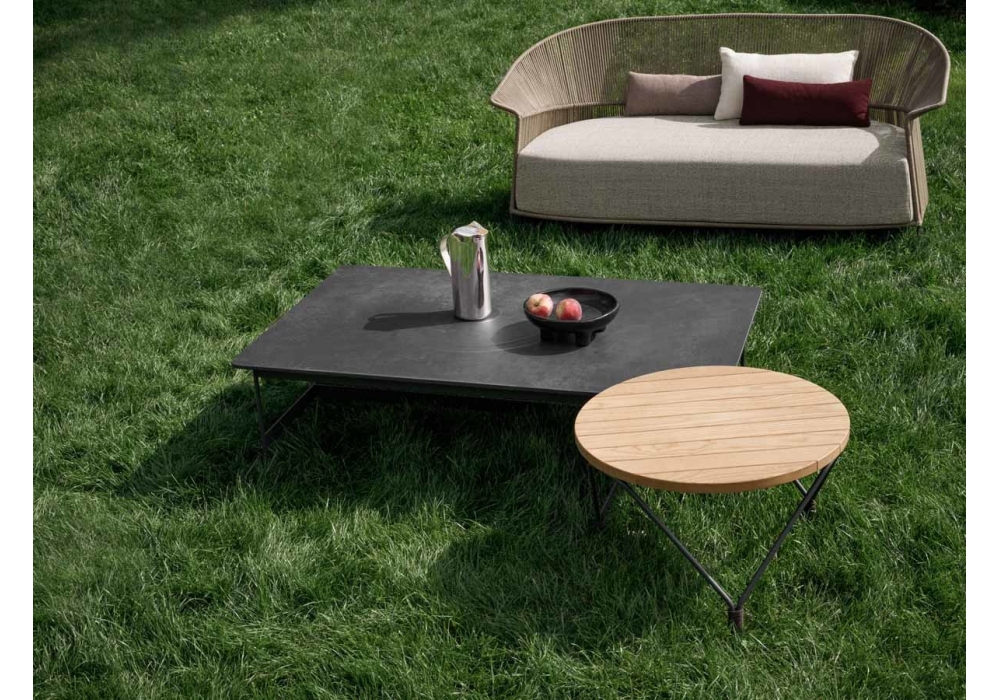Little T Outdoor von Potocco D&D für Potocco entworfen, ist ein Outdoor-Couchtisch mit einer viereckigen Form, die durch die Kombination von Metall und Feinsteinzeug oder Naturstein strukturiert wird. Little T ist in verschiedenen Größen und Ausführungen erhältlich.