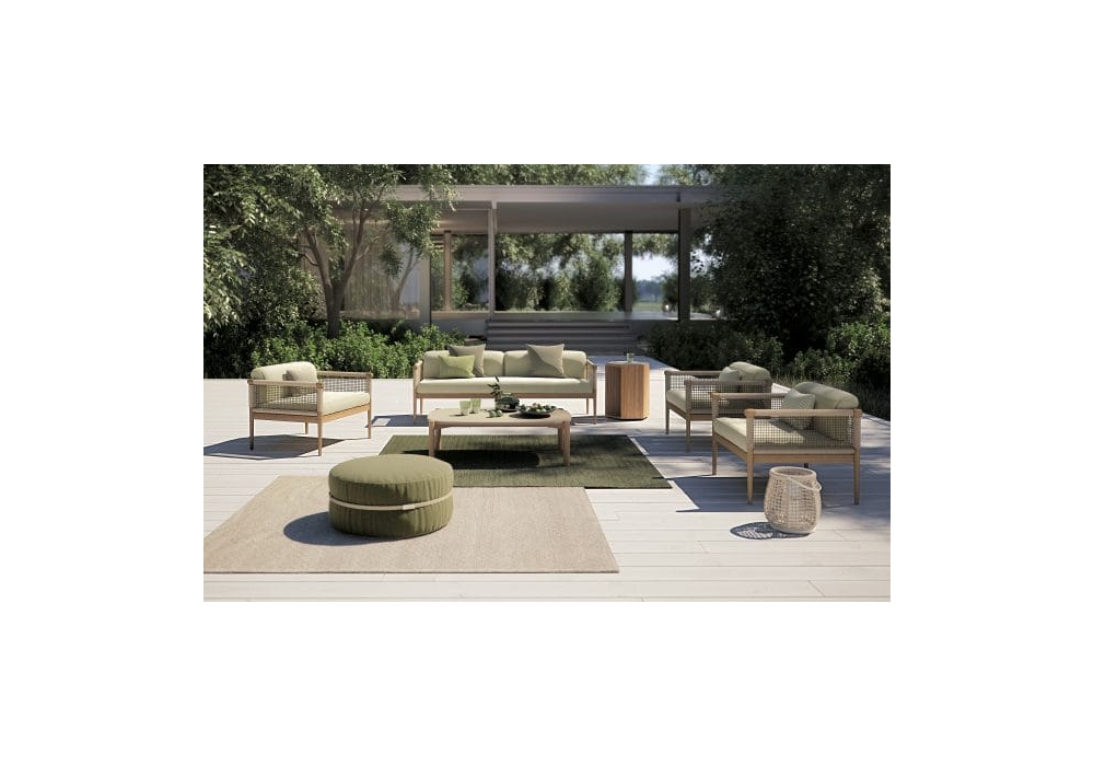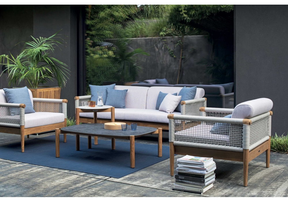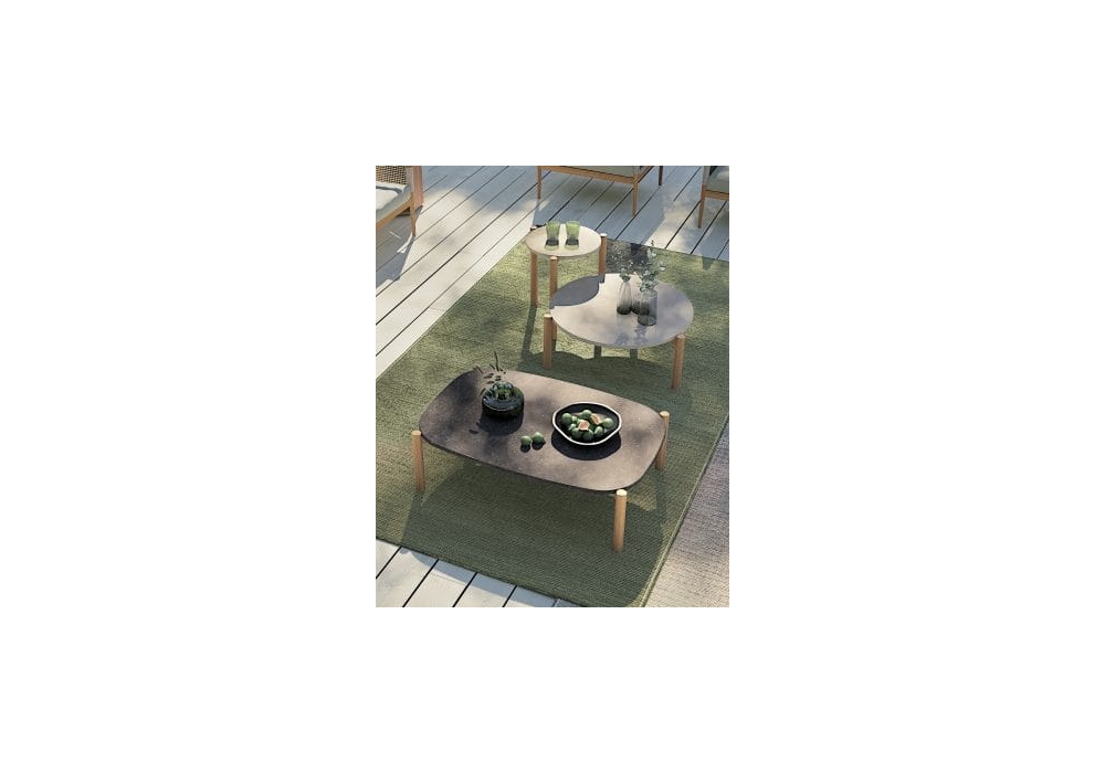 Lodge von Atmosphera entworfen, ist ein Couchtisch mit Steinzeugplatte und Teakholzstruktur. Verfügbar in 2 Ausführungen.