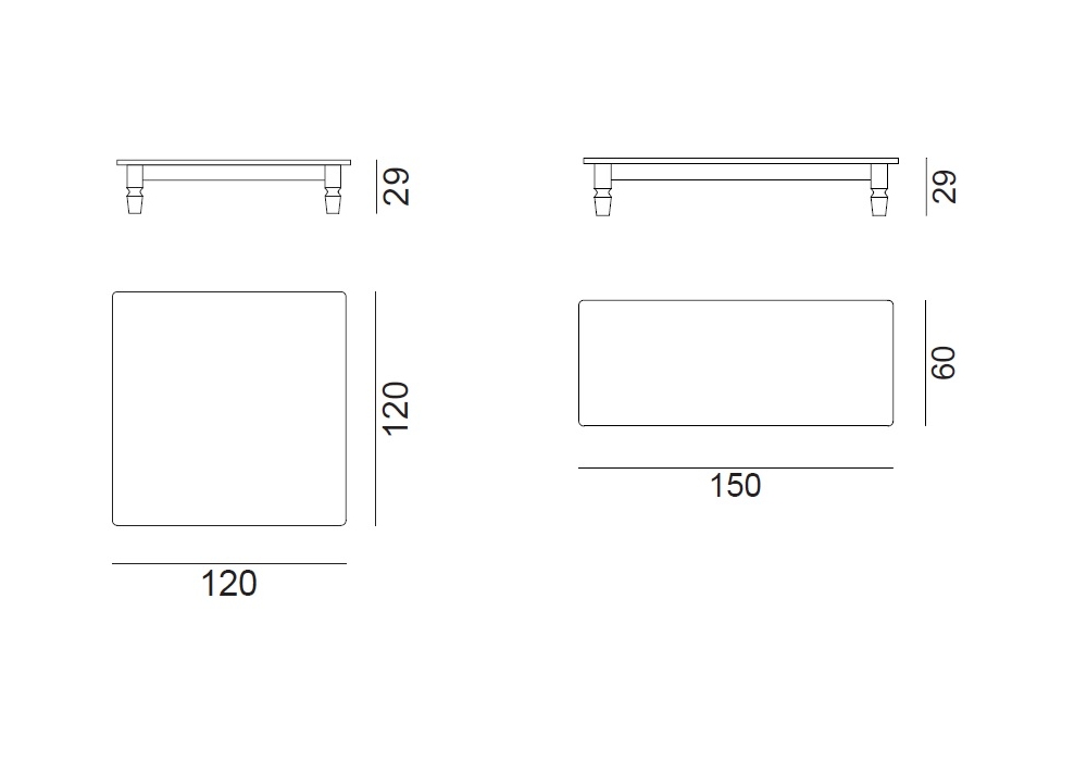 | Abmessungen | 120 x 120 x H 29 cm; 150 x 60 x H 29 cm. |