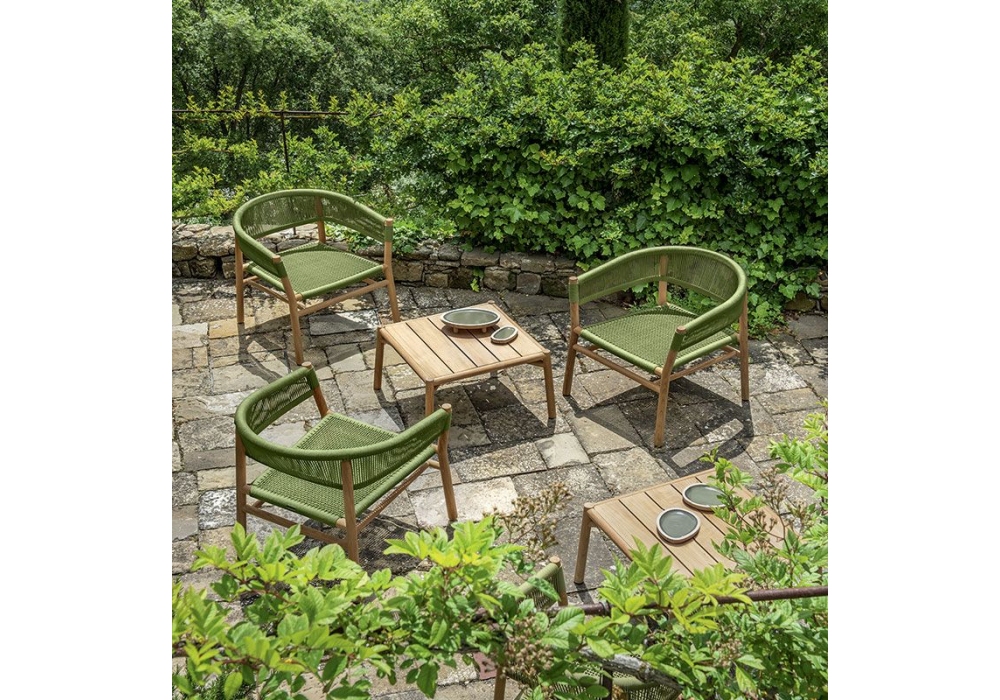 Kilt, von Marcello Ziliani für Ethimo entworfen, ist ein viereckiger Outdoor-Couchtisch, der vollständig aus Teakholz besteht. Kilt ist in verschiedenen Ausführungen erhältlich.